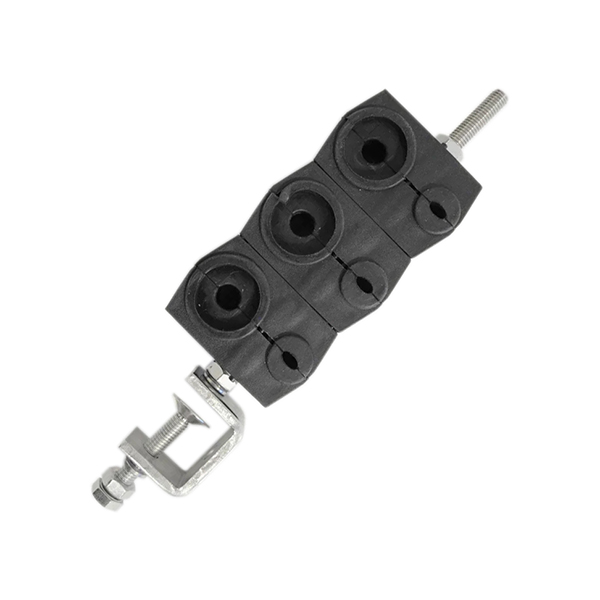 Крепление оптического кабеля и кабеля электропитания 1 оптика + 1 кабель питания (6-25 мм2) состоит из стальной оцинкованной струбцины и плашек из УФ стойкого полимера, имеющих специальные канавки для крепления кабеля.