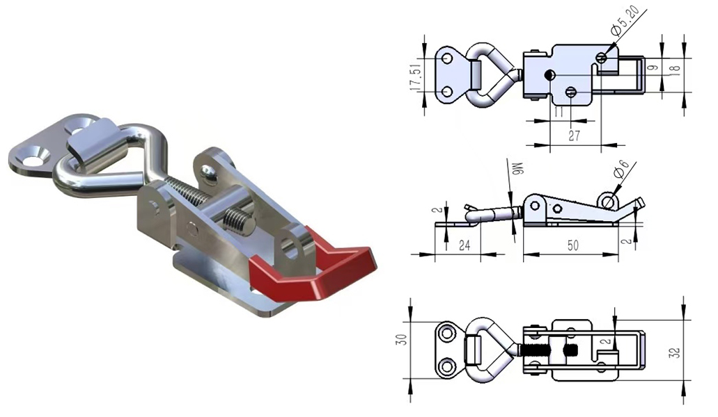 Замок регулируется винтом по длине от 100-115 мм. В основании имеется отверстие под навесной замок, что позволит фиксировать его в закрытом положении и предотвратит несанкционированное открывание. Регулируемую конструкцию замка удобно использовать, когда необходимо стянуть или зафиксировать поверхности имеющие люфт или не плотно прилегающие друг к другу элементы.